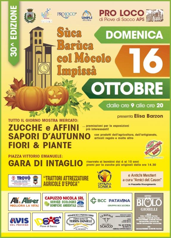 La tradizionale festa della Pro Loco di Piove di Sacco "Sùca Barùca col Mòcolo Impissà" è alla sua 30a edizione.