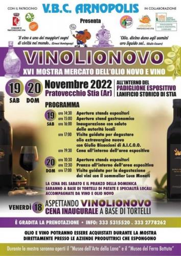 Vinolionovo - XV Mostra-Mercato di Vino e Olio, si svolge il 19 e 20 Novembre 2022 a Pratovecchio Stia (AR) presso i locali dell’Ex Lanificio storico.