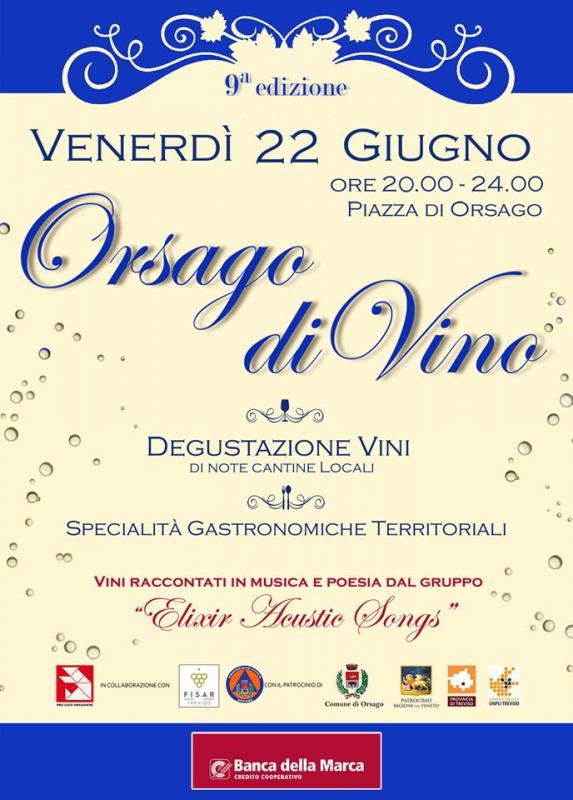 Giunti ora in un periodo stagionale con serate dal clima piacevole la Pro Loco Orsaghese propone per Venerdì 22 giugno la nona edizione di “Orsago diVino”. A partire dalle ore 20 e fino alle 24 nella cornice della piazza principale di Orsago i sommelier della Fisar serviranno in degustazione, nel calice dato ai partecipanti, i preziosi vini di ben 25 produttori veneti e friulani, con la possibilità di accompagnarli con gli assaggi di specialità gastronomiche territoriali, tra le quali la “Pitina della Valtramontina” (Presidio Slow Food friulano) e il “Petto d’oca del Mondragon” (Prodotto Agroalimentare Tradizionale veneto).