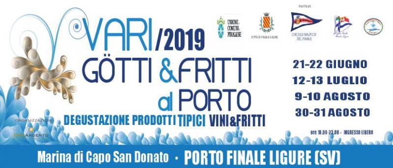 Torna Vari Gotti e Fritti al Porto di Finale Ligure (SV), l'evento enogastronomico organizzato da Oroargento, Circolo Nautico e Lega Navale, che si svolge: 21-22 giugno; 12-13 luglio; 9-10 agosto; 30-31 agosto.