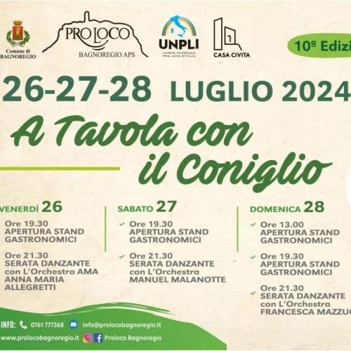 a tavola con il coniglio 26, 27, 28 Luglio 2024 a Bagnoregio (Piazzale Battaglini) per la tradizionale festa "A tavola con il coniglio". organizzata dalla Pro Loco Bagnoregio APS