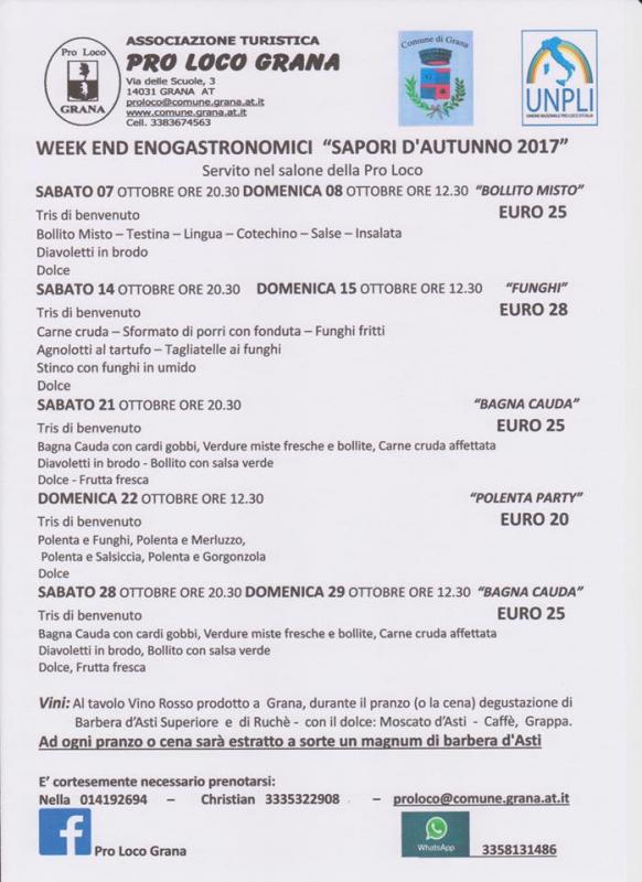 Con Sapori D'autunno 2017 a Grana (AT) arrivano ad ottobre una serie di weekend enogastronomici dedicati a funghi, tartufi e bagna cauda.