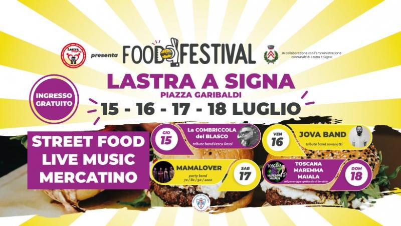 Food Festival a Lastra a Signa dal 15 al 18 Luglio 2021, in Piazza Garbaldi specialita del cibo di strada dall'Italia e non solo.
