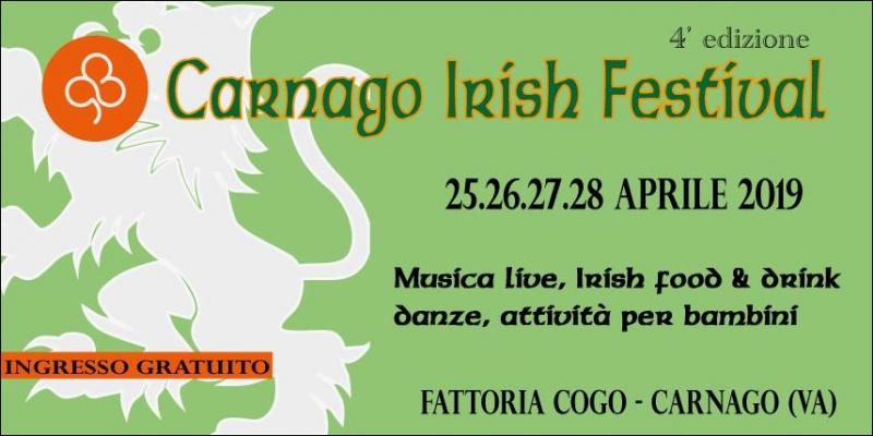 Come ogni anno ad INGRESSO GRATUITO. Carnago incontra l'Irlanda dal 25 al 28 Aprile 2019