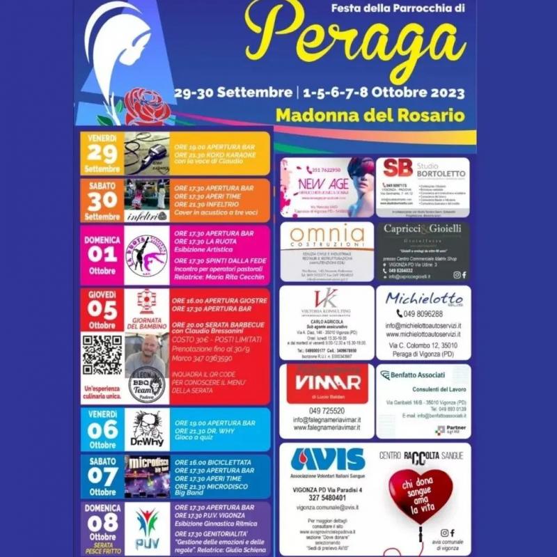 Festa della Parrocchia di Peraga Madonna del Rosario 29, 30 settembre 1, 5, 6 e 7-8 Ottobre 2023