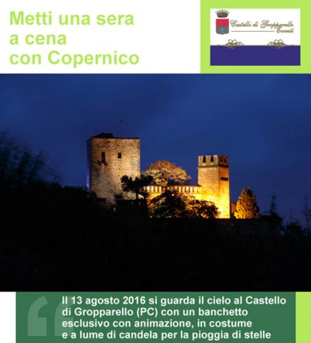 Il 13 agosto 2016 si guarda il cielo al Castello di Gropparello (PC) con “Sogni, desideri e filtri d’amore sotto le stelle”: un banchetto esclusivo con animazione nella roccaforte guelfa, in costume e a lume di candela proprio per la pioggia di stelle di San Lorenzo