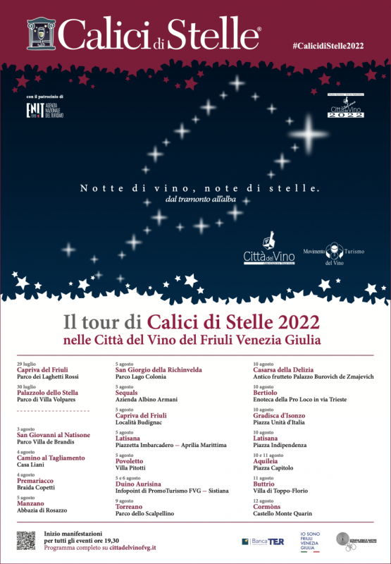 In Friuli Venezia Giulia si svolge nei giorni dal 29 Luglio al 12 Agosto 2022 la nuova edizione di Calici di Stelle.