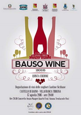Mercoledì 17 agosto 2016 torna al Castello di Bauso, Villafranca Tirrena (ME), l'evento enogastronomico Bauso Wine, una esperienza sensoriale unica che coinvolge gusto, olfatto, udito, vista e tatto...