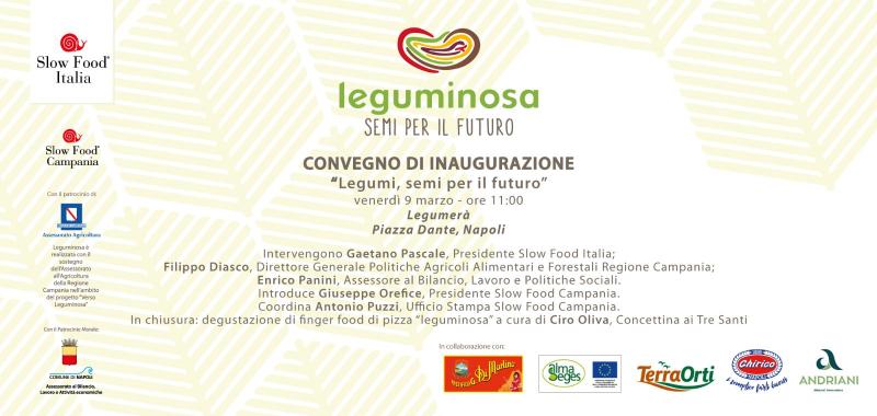 La terza edizione di Leguminosa, in programma da venerdì 9 a domenica 11 marzo, sarà ospitata ancora una volta dalla città di Napoli in Piazza Dante. Leguminosa è patrocinata e sostenuta dalla Regione Campania nell’ambito del progetto “Verso Leguminosa 2018” promosso dall’Assessorato all’Agricoltura, e gode del Patrocinio Morale del Comune di Napoli – Assessorato al Bilancio, Lavoro e Attività Economiche. La manifestazione è inoltre resa possibile grazie alla partecipazione di Pastificio G. Di Martino, Alma Seges, Terra Orti, Grano Chirico e Andriani Spa. Essa s’inserisce nell’ambito degli appuntamenti della rete nazionale di Slow Beans – Comunità Leguminosa.