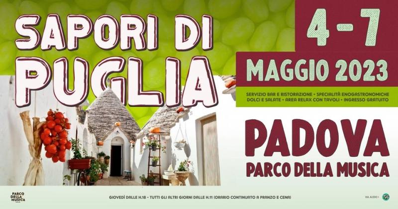 Tornano a grande richiesta con la bella stagione gli appuntamenti enogastronomici nel verde del Parco della Musica di Padova: da Giovedì 4 a Domenica 7 Maggio 2023 in scena la 9° edizione di Sapori di Puglia, il format itinerante dedicato alla cucina pugliese, per un lungo weekend non perdere!