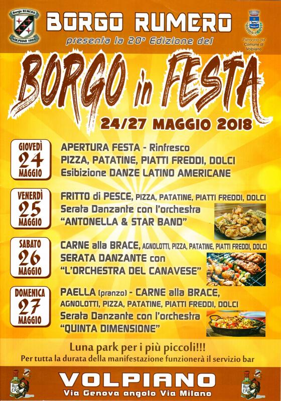 Ore 10:00 S. Messa del Borgo presso il padiglione della Festa in Via Genova.