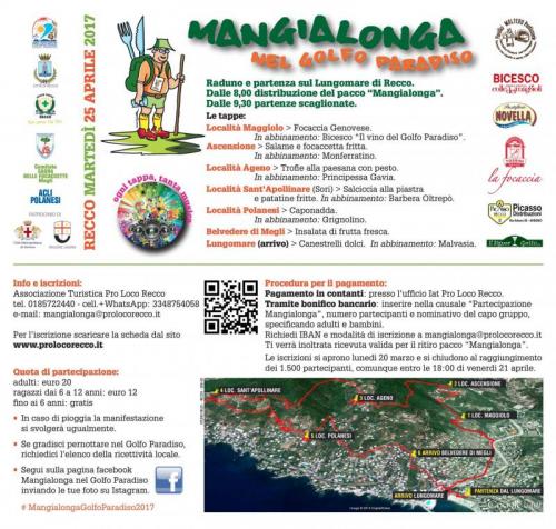 Martedì 25 aprile 2017 si svolge la Mangialonga a Recco: passeggiata enogastronomica nel Golfo Paradiso sui sentieri panoramici delle nostre colline tra Recco e Sori.