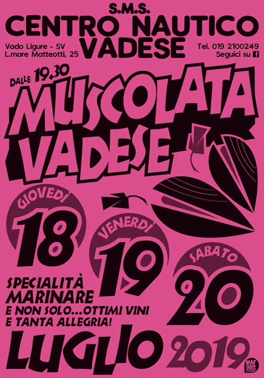 Dal 18 al 20 luglio 2019 la S.M.S. Centro Nautico Vadese organizza la tradizionale Muscolata Vadese.