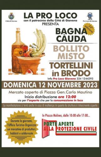 La Proloco reduce dal grande successo della 42ª edizione di “Fungo in Festa” manifestazione che ha anche ottenuto il riconoscimento come Fiera da parte della Regione, con il patrocinio della Città di Giaveno, e la collaborazione dell’Ufficio Turistico, torna operativa, Domenica 12 Novembre, con un altro gustoso e tradizionale appuntamento giunto alla 24ª edizione: “Bagna Cauda, Bollito Misto, Tortellini in Brodo”.