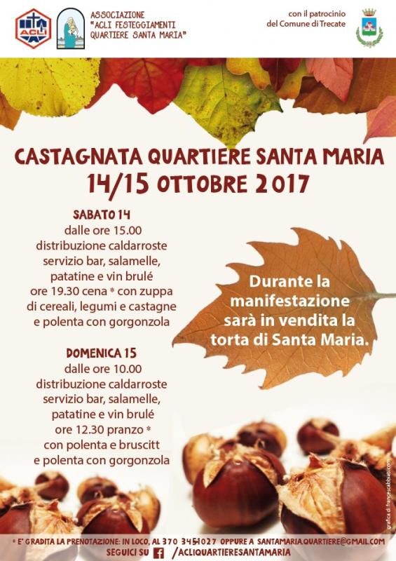 Sabato 14 e domenica 15 ottobre 2017 si svolge la CASTAGNATA al quartiere Santa Maria di Trecate (NO).