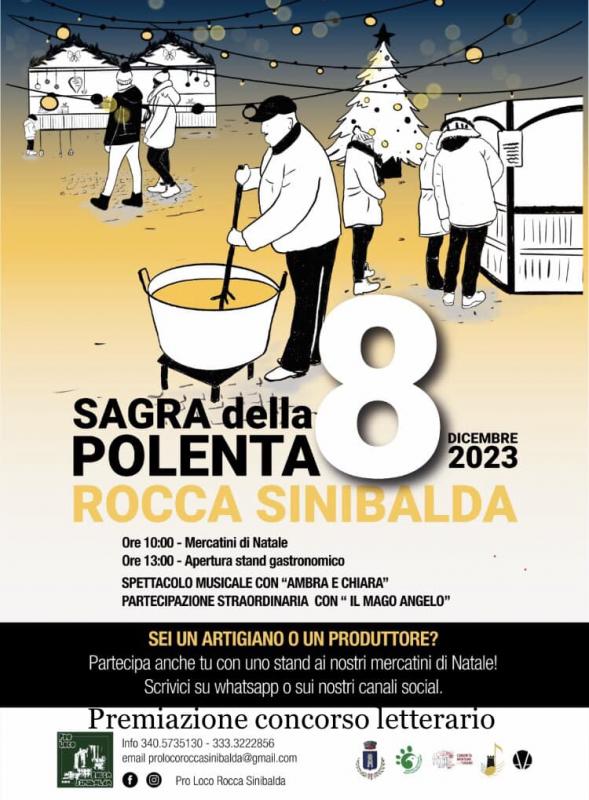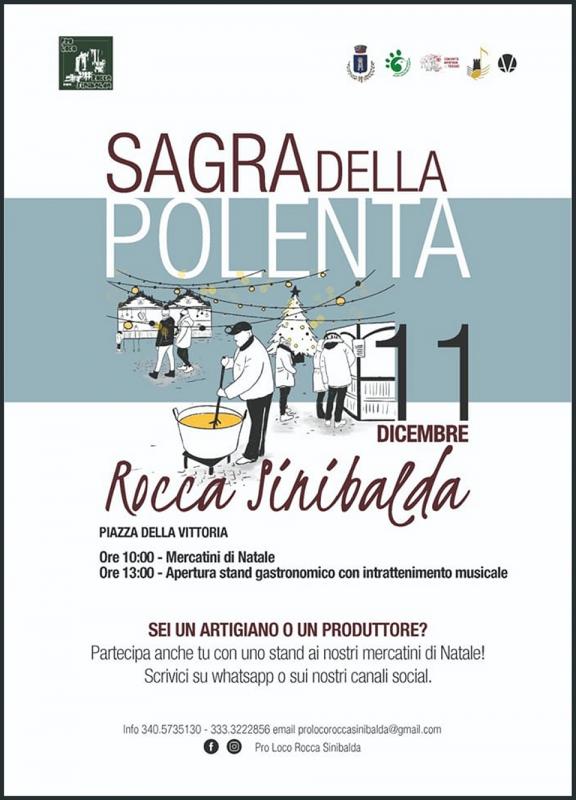 In Piazza della Vittoria a Rocca Sinibalda in provincia di Rieti si svolge nella giornata di 8 Dicembre 2023 la Sagra della Polenta in Piazza.