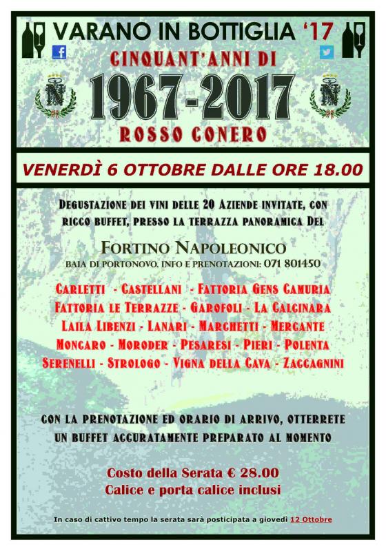 L’invito è per tutti coloro che apprezzano questo gioiello è dalle ore 18:00 in poi presso la terrazza panoramica del Fortino Napoleonico con venti cantine produttrici faranno degustare accompagnato da un buffet gourmet preparato ad hoc in base all’orario di arrivo dei prenotati. Per partecipare a questa serata dedicata a cinquant’anni di crescita e successi, è quindi necessaria la prenotazione all’Hotel Fortino Napoleonico (Tel. 071/801450).