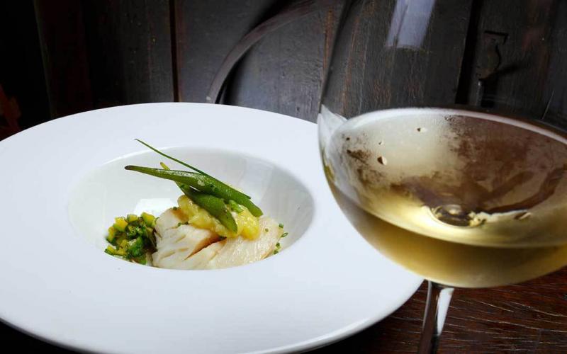 Baccalà con crema di porri e calice di Roero Arneis Vietti