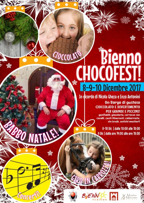Torna Bienno Chocofest da venerdì 8 a domenica 10 dicembre 2017 con tanto cioccolato, ma anche tantissimo divertimento per grandi e piccini, gonfiabili, giocoleria, carrozze trainate da cavalli, canti itineranti, caldarroste, vin brulè, antichi mestieri.