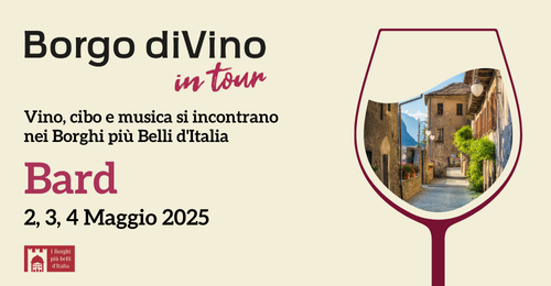 Il fine settimana del 2, 3 e 4 maggio Bard ospiterà per il secondo anno consecutivo Borgo diVino in tour, il ciclo di eventi dedicato alle eccellenze del buon bere promosso dall’Associazione “I Borghi più belli d’Italia”. Un intero weekend di degustazioni con centinaia di proposte da tutto il Paese.