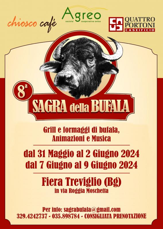 1-2 giugno 2024 e 7-8-9 giugno la SAGRA della Bufala alla Fiera di Treviglio.