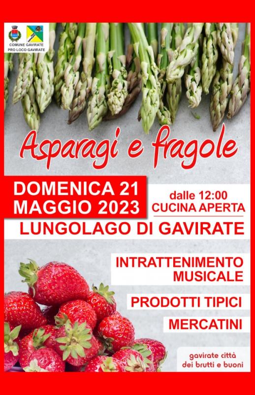Presso il Lungolago di Gavirate in provincia di Varese si svolge nella giornata di Domenica 21 Maggio 2023 la nuova edizione della Sagra "Asparagi e Fragole".