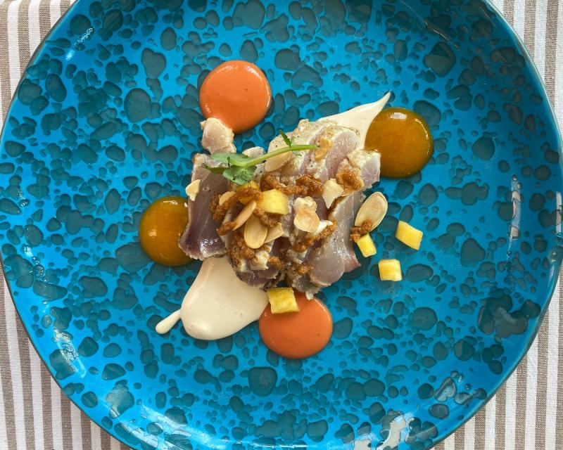 Il Pinot Bianco "Schulthauser" 2020 è il vino fruttato e fresco della linea Selezione di San Michele Appiano, perfetto per accompagnare l’entrée del menu degli Chef Dal Farra: Tataki di ricciola con crema di mandorle, gel di albicocca, pomodoro e pesca. La cremosa morbidezza e la spiccata acidità del Pinot Bianco "Schulthauser" esalta l’incontro dei vari sapori e profumi che nell’antipasto della Locanda San Lorenzo trovano sapiente equilibrio.