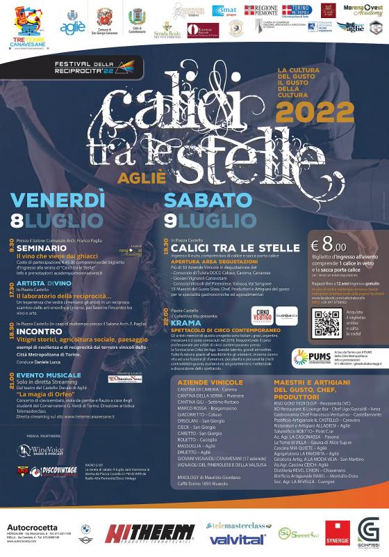 Interessanti novità di questa settima edizione che si svolgerà venerdì 8 e sabato 9 luglio in Piazza Castello ad Agliè (TO), e che renderanno ancora più interessante questo importante evento enogastronomico canavesano dell'estate: Anteprima Calici del venerdì, i nuovi Chef e Produttori presenti, i grandi miglioramenti logistici, gli spettacoli di livello internazionale e l'assoluta eccellenza di alcune tra le migliori aziende vitivinicole D.O.C.G. canavesane del Consorzio Tutela Caluso, Carema, Canavese, dei Giovani Vignaioli Canavesani e dei Consorzi di Tutela del Pinerolese e Valsusa, del Consorzio Operatori Turistici Valli del Canavese, dei Maestri del Gusto canavesani (Camera Commercio e Slow Food) e degli ottimi Chef ed artigiani del gusto territoriale.