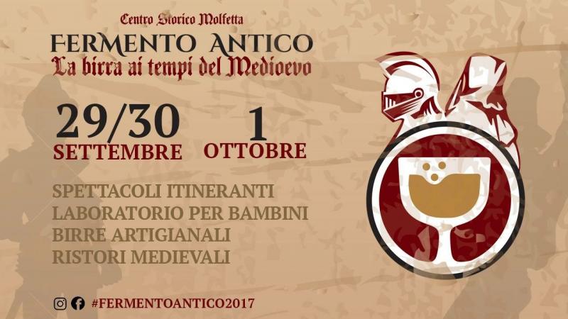 Fermento Antico è concepito come evento rievocativo e unirà la storica tradizione crociata della città di Molfetta al valore culturale ed enogastronomico della birra, bevanda molto amata e consumata dai cavalieri rossocrociati.