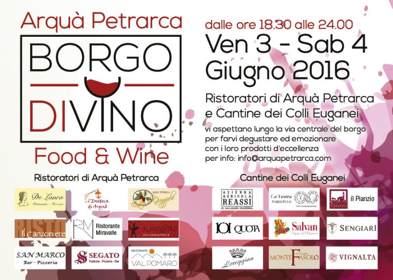 Il 03 e il 04 Giugno si terrà ad Arquà Petrarca Borgo di Vino