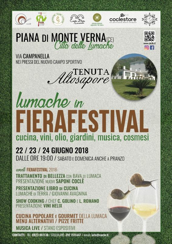 Ritorna "Lumache in Fierafestival" - l'evento estivo dedicato alla gastronomia della Lumaca, nei giardini della Tenuta Altosapore, a Piana di Monte Verna (CE).