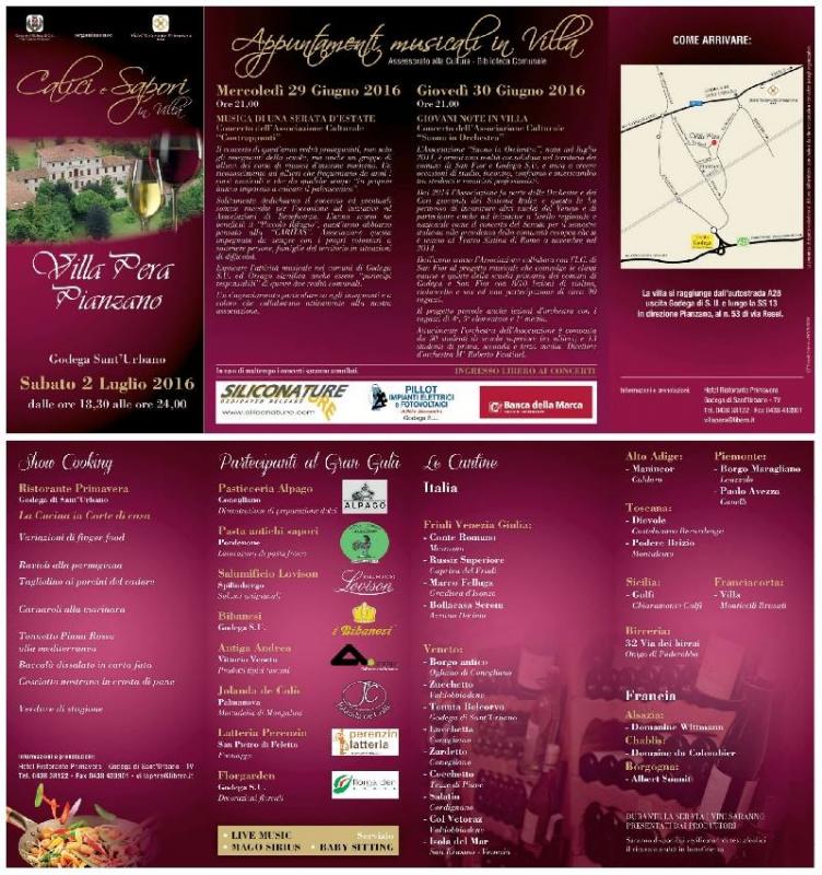 Calici e Sapori in Villa 2 luglio 2016 dalle 18.00 a mezzanotte Villa Pera - Pianzano di Godega di Sant`Urbano (TV)