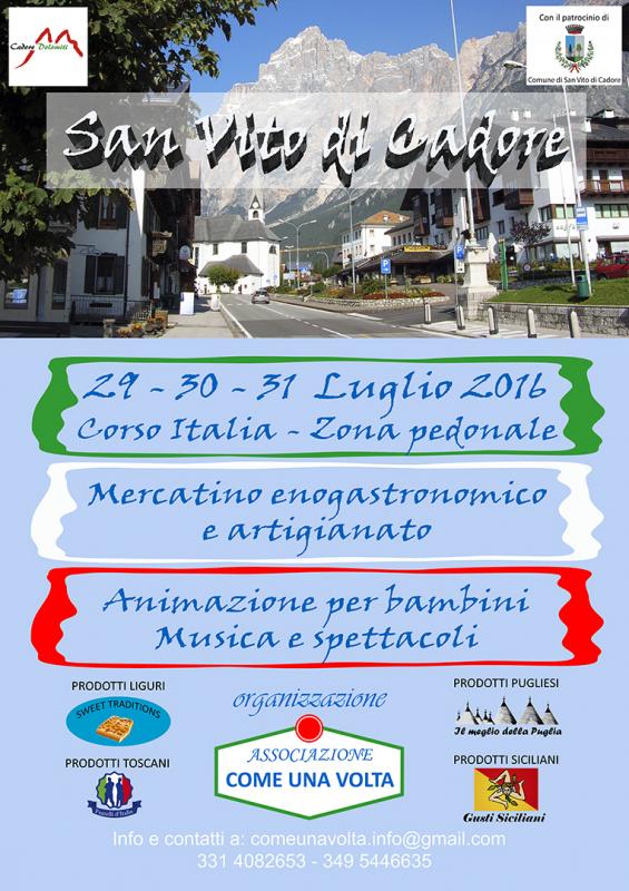 “COME UNA VOLTA”:tre giorni di esposizione di prodotti tipici regionali e artigianato italiano, alla riscoperta dei sapori di una volta.Gli Stands aprono al pubblico dalle ore 9.00 alle ore 20.00, nei giorni di venerdi 29, sabato 30 e domenica 31, il tutto sarà contornato da associazioni artistiche di strada, che si prenderanno cura dei piccoli e dei grandi, con le loro attrazioni e giochi.