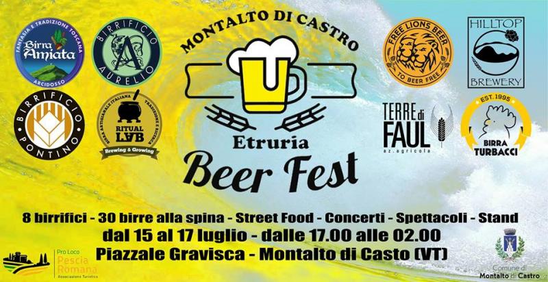 1° Etruria Beer Fest, festival delle birre artigianali organizzato dal Comune di Montalto di Castro con la partecipazione della Pro Loco di Pescia Romana, l'associazione Volo Magico e 8 birrifici artigianali selezionati: