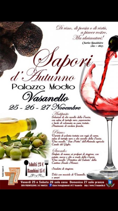 Tre giorni, dal 25 al 27 novembre, con la prima edizione di un evento, organizzato dalla Classe 1977, che intende celebrare i prodotti tipici autunnali che caratterizzano il territorio della Tuscia e la cultura popolare ad essi legata.