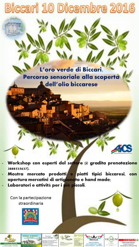Anche per i bambini vi sarà un apposito percorso sensoriale, nonchè mercato di hand made, attività natalizie per i bambini e degustazione di prodotti tipici biccaresi con olio.