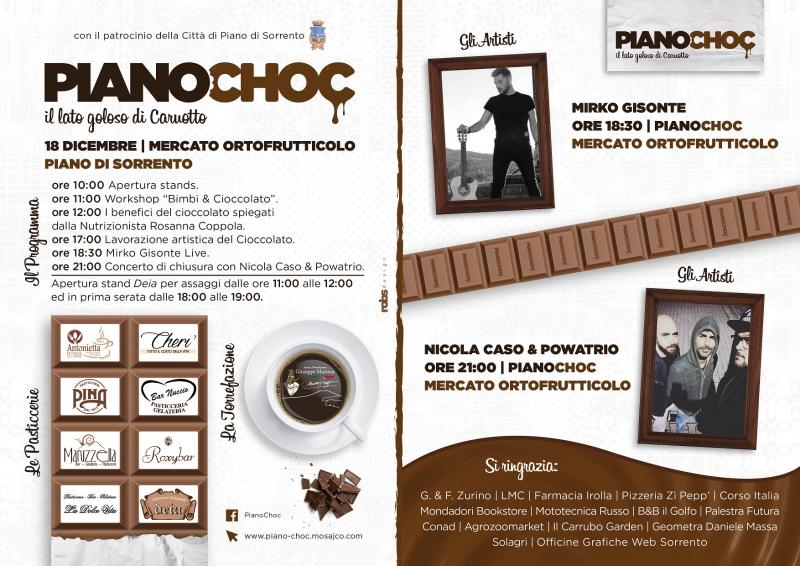 PIANO DI SORRENTO. Si terrà domenica 18 dicembre presso il mercato ortofrutticolo di Piano di Sorrento la prima edizione di “PianoChoc - Il lato goloso di Caruotto”. La manifestazione, organizzata da un gruppo variegato di giovani carottesi, nasce dall’idea di rivalorizzare per un giorno un’area della città, il mercato ortofrutticolo appunto, trasformandola in una vera e propria fiera del cioccolato.