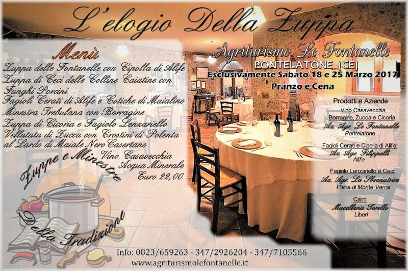 L’ Agriturismo le Fontanelle, come da rituale, offre delle Zuppe conformi alle ricette caserecce e tradizionali Trebulane, con alcune varianti personalizzate da Vincenzo Civitella.
