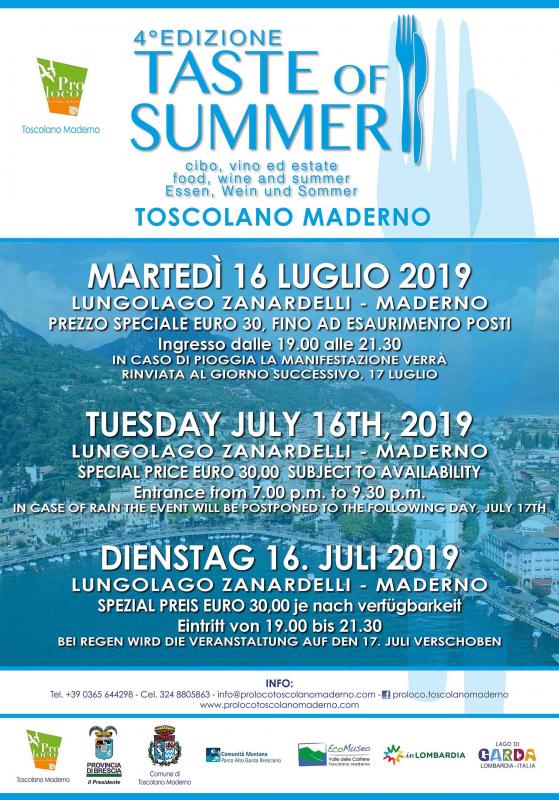 La serata avrà luogo martedì 16 luglio 2019, a partire dalle ore 19.00 e prevede la degustazione di specialità locali preparate dai migliori ristoranti della zona, in abbinamento a rinomati vini del territorio.