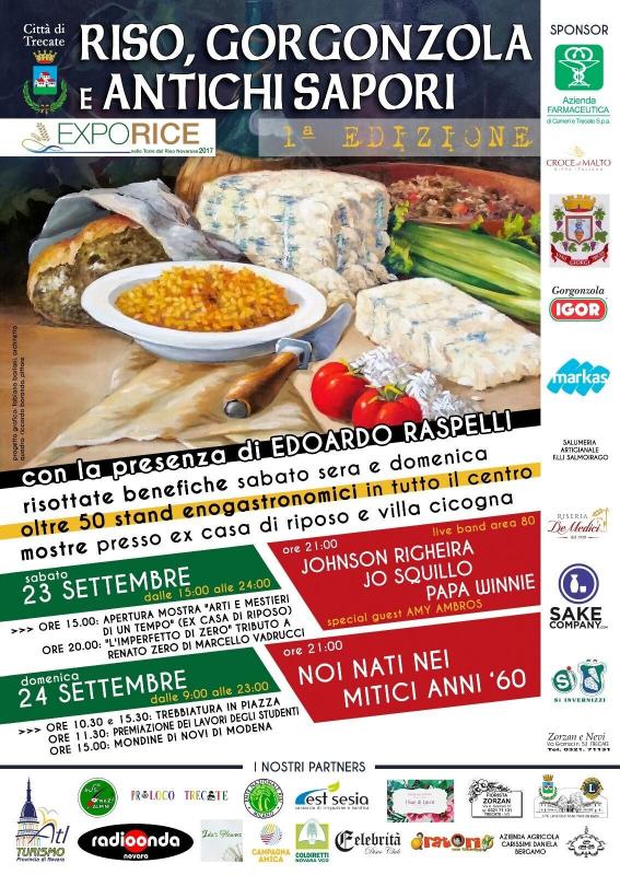 Sabato 23 e domenica 24 settembre a Trecate (in provincia di Novara) si svolgerà la prima edizione della manifestazione "Riso, gorgonzola e antichi sapori", evento volto a promuovere le antiche tradizioni gastronomiche del territorio e che avrà come testimonial Edoardo Raspelli, giornalista, conduttore televisivo e"cronista della gastronomia".