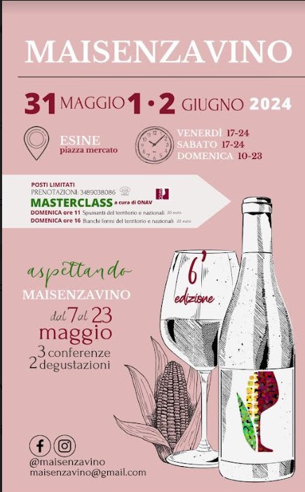 La manifestazione sarà anticipata dagli appuntamenti di Aspettando Maisenzavino, 3 conferenze e 2 serate di degustazione.