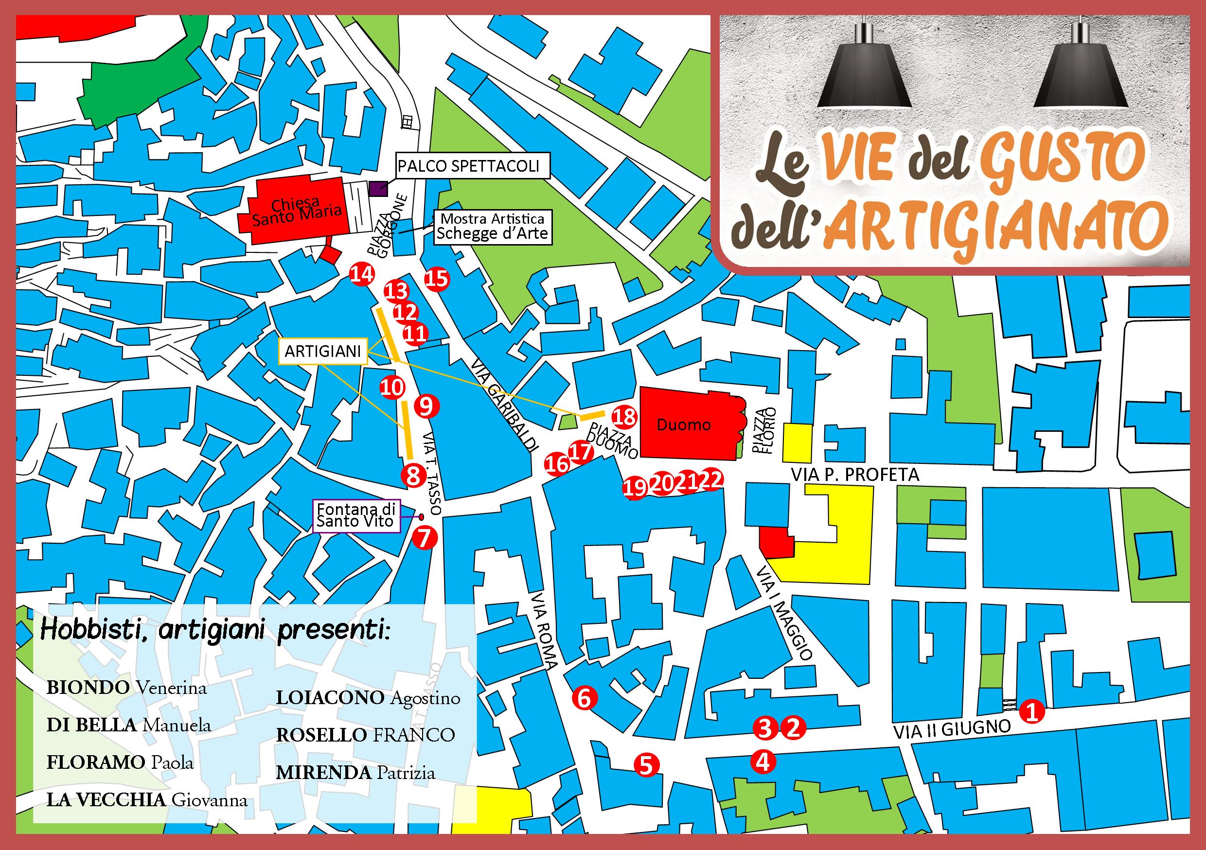 Mercatini artigianali di tessitura, filati, prodotti in ferro battuto, bigiotteria, hobbistica e oggettistica.