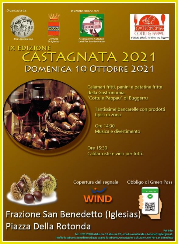 La Pro Loco di Iglesias in collaborazione con il Comune di Iglesias e l'Associazione Culturale "Uniti Per San Benedetto" organizza la nona edizione della Castagnata nella "Piazza della Rotonda" Frazione di San Benedetto (Iglesias)