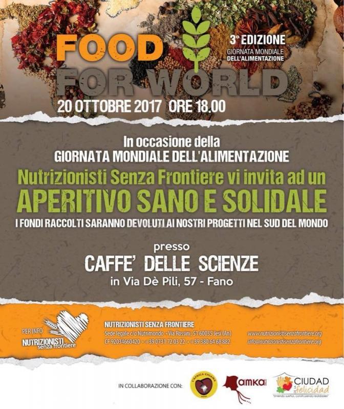 L’Africa Chiama è fra le associazioni che hanno aderito all’evento nazionale “Food for World” promosso da Nutrizionisti Senza Frontiere in occasione della Giornata Mondiale dell’Alimentazione: un aperitivo sano e solidale che si terrà contemporaneamente in tantissime città italiane a sostegno dei progetti nel Sud del mondo.