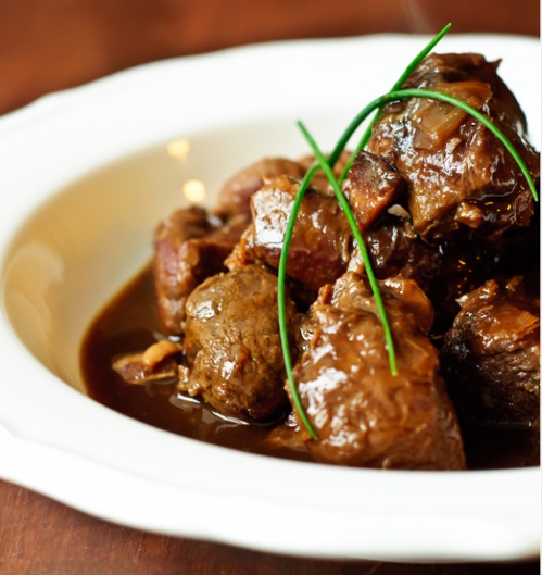 * Cinghiale in umido con polenta e calice di Colombaia Podere La Madia