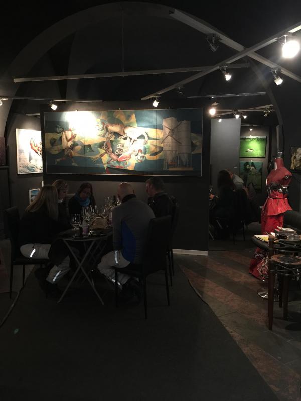 Toffee's Art Gallery informa che è possibile degustare taglieri a base di salumi a km.0, o semplicemnete bere un caffè o un buon vino, immersi in un contesto di Opere di Arte Contemporanea.