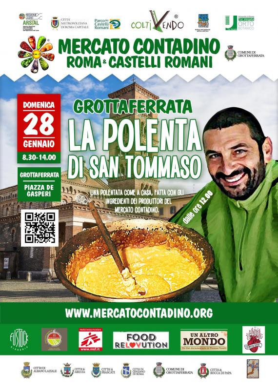 Domenica 28 gennaio 2018, grazie all'azienda agricola Umberto Di Pietro di Capena, il Tour della POLENTA farà tappa, a grande richiesta, al Mercato Contadino di Grottaferrata, in Piazza De Gasperi, dove ogni domenica (dalle 8.30 alle 13.30) tante piccole aziende agricole del territorio si danno appuntamento da oltre 2 anni con gli appassionati del buon cibo. Farm lovers e food lovers assieme per trasformare in una grande festa di comunità la spesa settimanale.