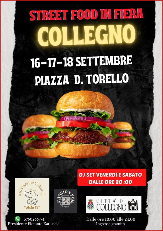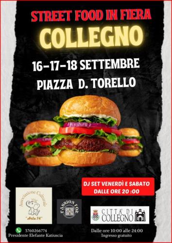 In Piazza D. Torello a Collegno in provincia di Torino si svolge nei giorni 16, 17, 18 Settembre 2022 la manifestazione Street Food in Fiera.