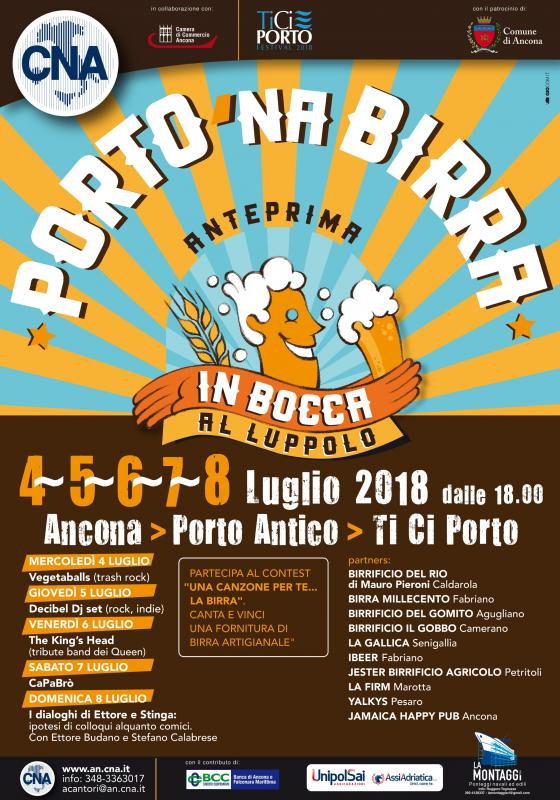La CNA di Ancona, in collaborazione con Comune e CCIAA di Ancona, organizza da mercoledì 4 a domenica 8 luglio presso la manifestazione “Ti Ci Porto” (porto antico di Ancona) l’anteprima del Festival della birra “Porto ‘na birra”.