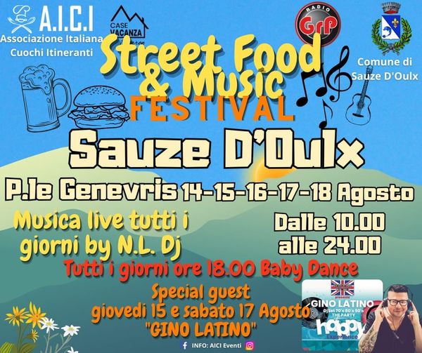 Per la seconda settimana di Agosto torniamo in Piemonte, a Sauze d'Oulx. Piazzale Genevris, dal 14 al 18 Agosto 2024 sarà sommersa dai sapori e i profumi del miglior street food in circolazione.